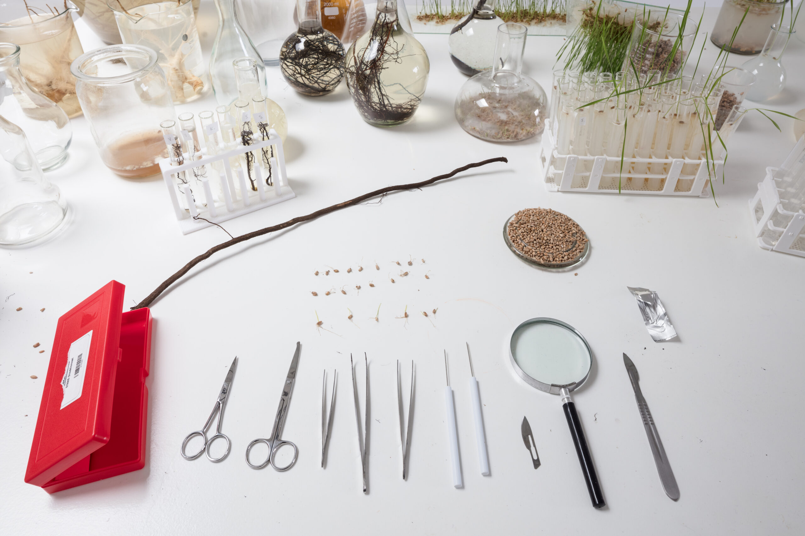 In the exhibition I have fallen in love with someone who hides inside you, the seed is explored. The fascination of the seed’s potential is the focal point; how a seed is both a stage in a process, but also an encapsulation of the whole process. As you walk through the three floors of the exhibition, different stages are presented and on the top floor you will find a laboratory where you get up close to the anatomy of the seed and the magic of germination.