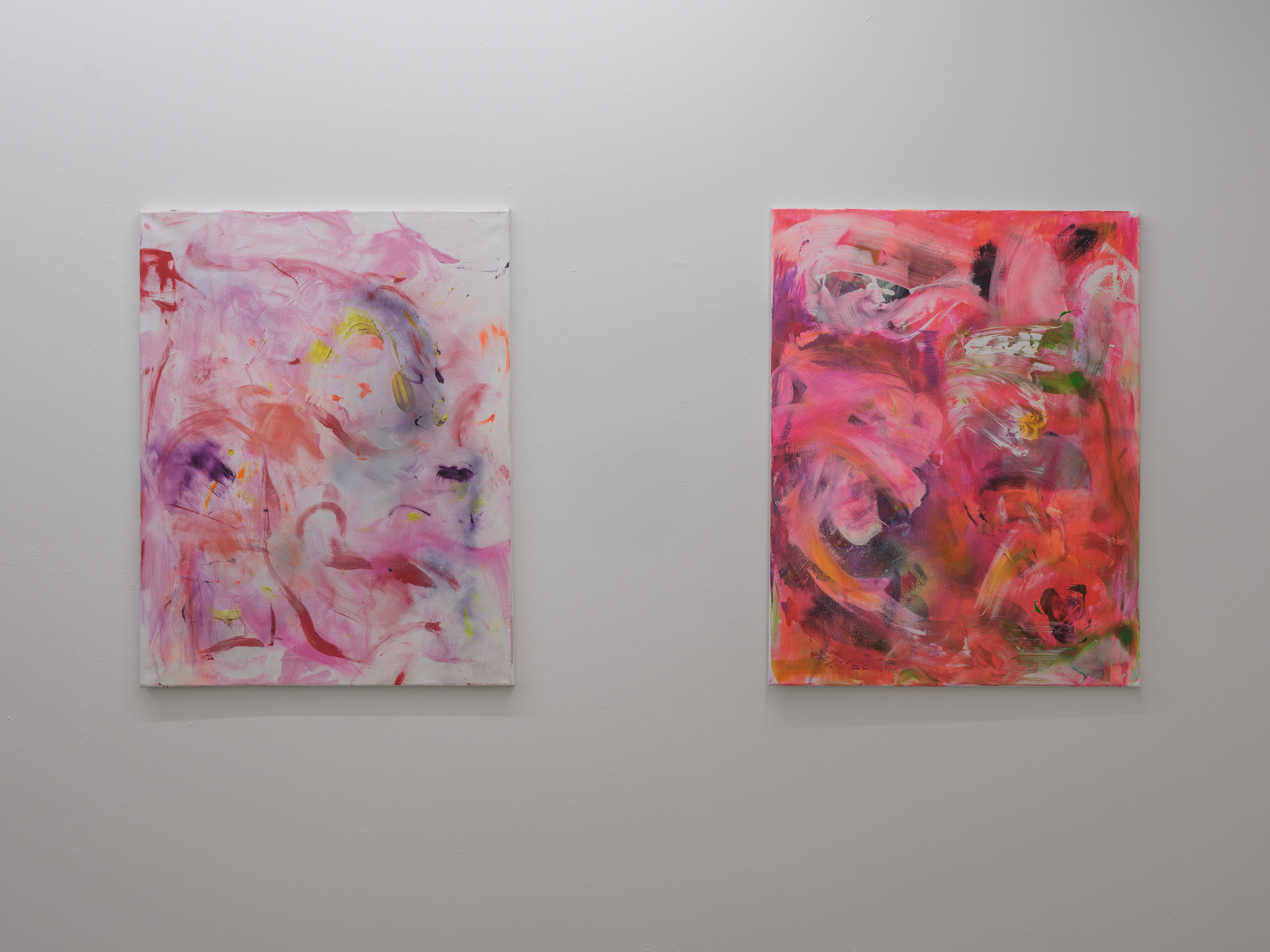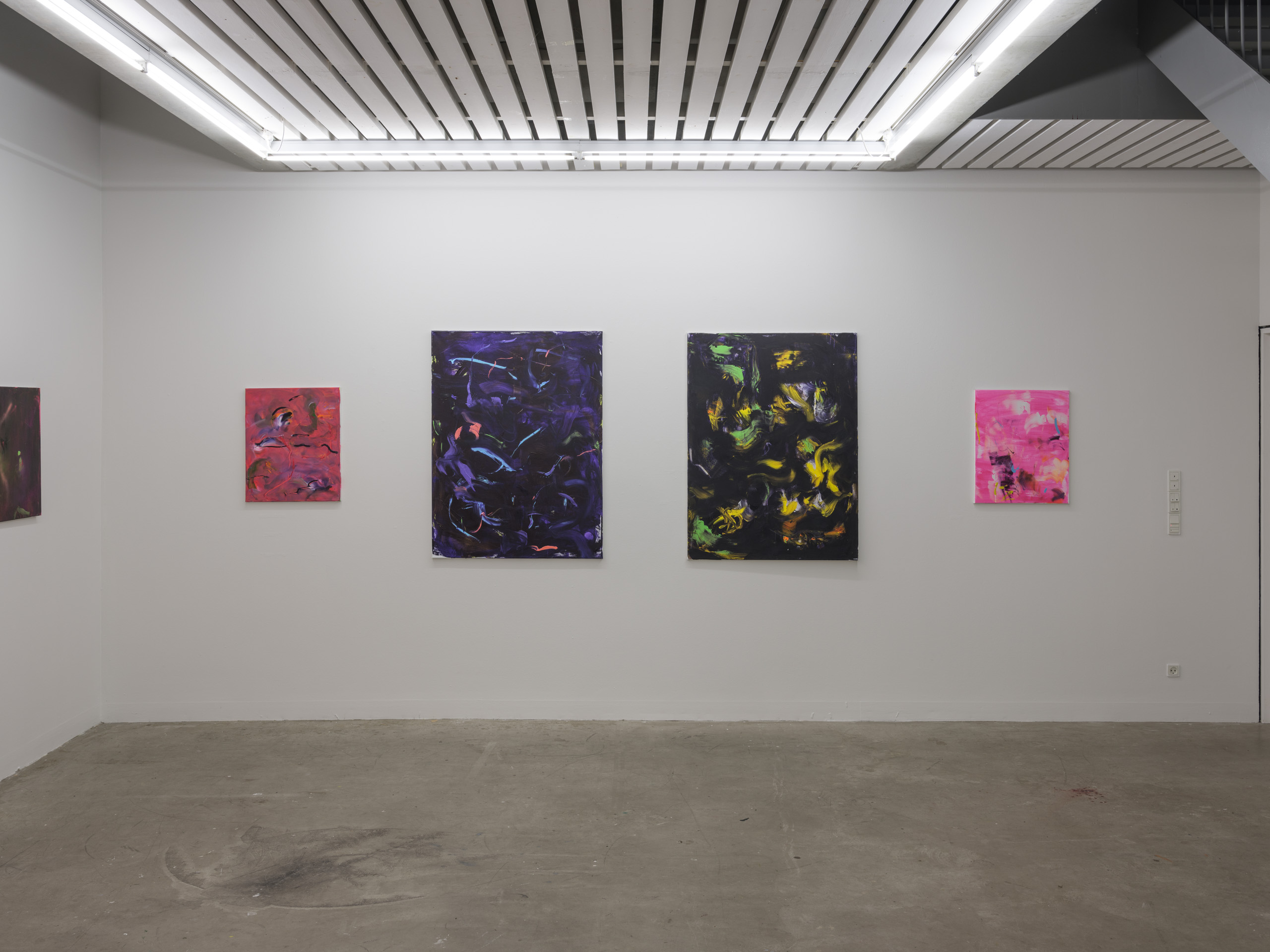 In the text accompanying the exhibition, you describe painting as hard work. Routine-driven and frustrating, but on the other hand, it’s also a framing and structuring way of life, where checking the phone, having a cup of coffee, and writing a shopping list play a role in the creation of the painting. When one says “painting,” it refers to both the result and the process. Seeing the paintings as an extension of a lived life must be acceptable. Some of the paintings are hanging here today. The process continues.