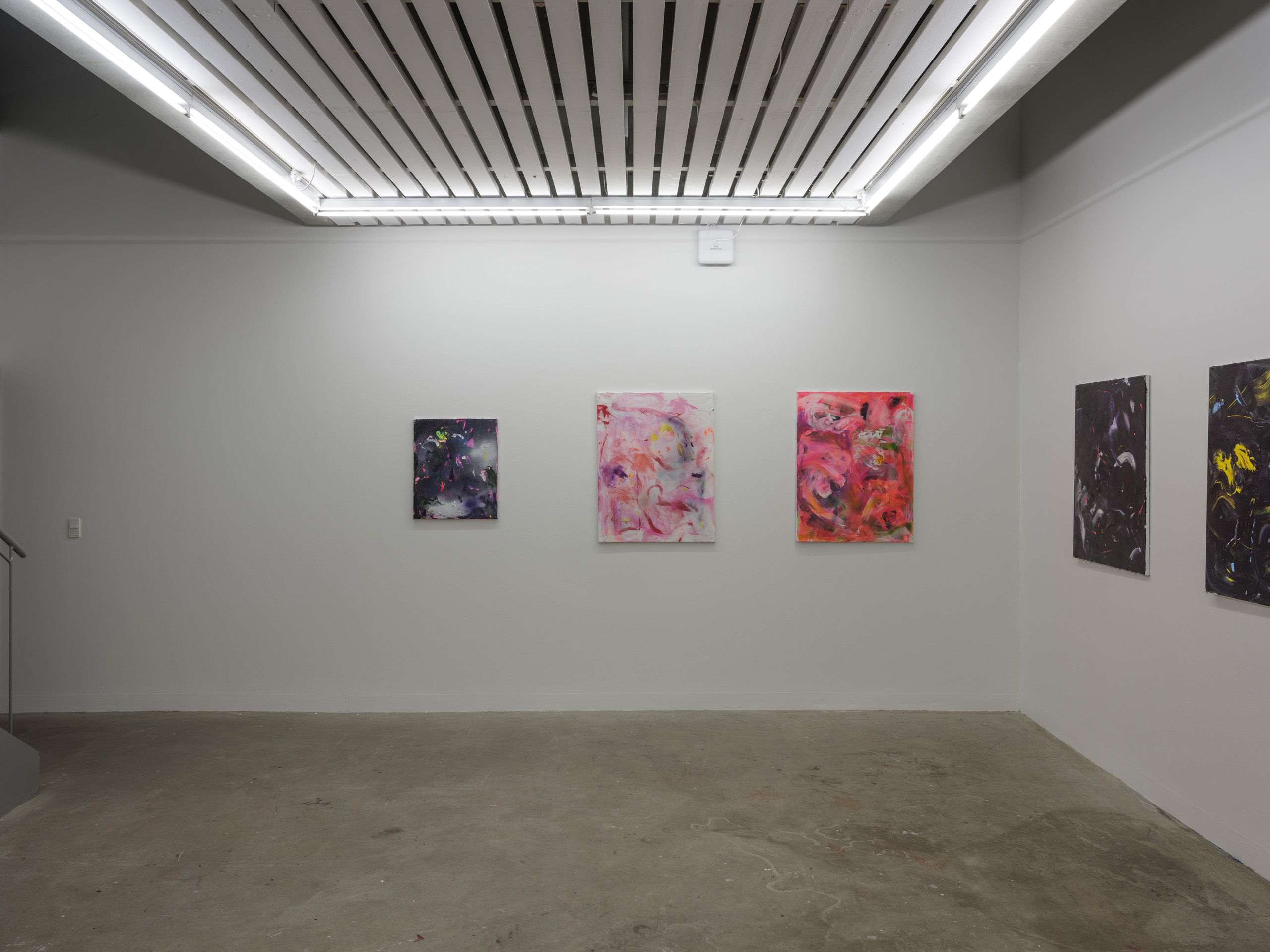 Du beskriver i den tekst, der ledsager udstillingen det at male som et fast arbejde. Rutinepræget og frusterende. Men på en anden side også som en rammesættende og strukturerende livsform, hvor det at checke telefonen, tage en kop kaffe og skrive en indkøbsseddel spiller en rolle for tilblivelsen af maleriet. Når man siger maleri, betegner det både resultat og proces. At se malerierne som en forlængelse af levet liv må være ok så. Nogle af malerierne hænger her i dag. Processen fortsætter.